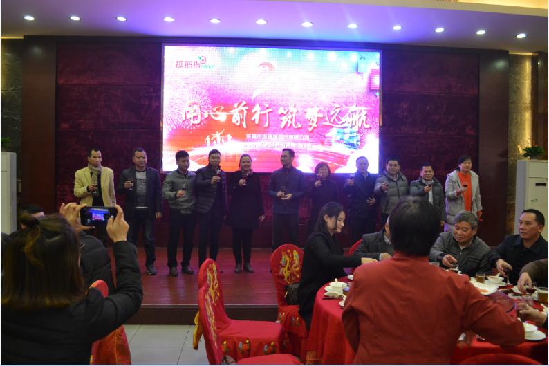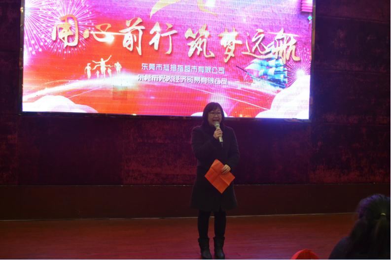2018年1月22日至2月2日東莞市光大經(jīng)濟貿(mào)易有限公司旗下的挺拇指超市在東莞市各鎮(zhèn)區(qū)挺拇指分店隆重舉辦挺拇指2018“用心前行 筑夢遠(yuǎn)航”團年晚宴,本次晚宴由挺拇指分店自行籌備和舉辦,形式豐富多樣,內(nèi)容豐富多彩,有幸運大抽獎,還有精心準(zhǔn)備的互動環(huán)節(jié)。晚會由公司派出以常務(wù)副總經(jīng)理蓋莉君女士為領(lǐng)導(dǎo)小組的隊伍分赴各分店與員工齊聚一堂,共同迎接2018年新的一年到來。